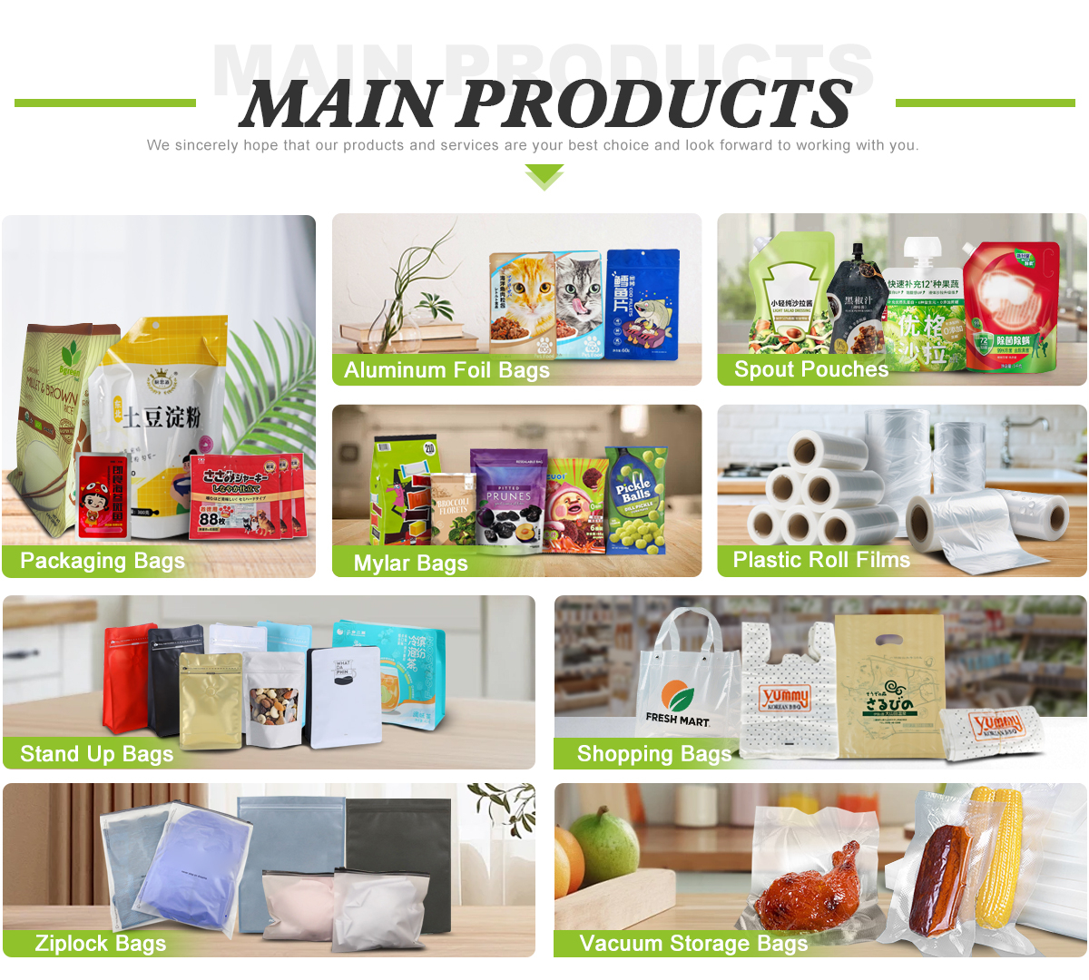 Principaux produits : Sac en plastique, sacs d'emballage alimentaire, sacs recyclables et film, film plastique, film étirable industriel